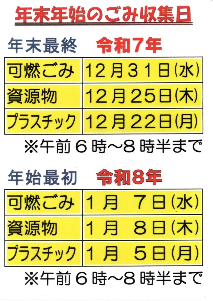 蓼川地区 年末年始のごみ収集日のお知らせ