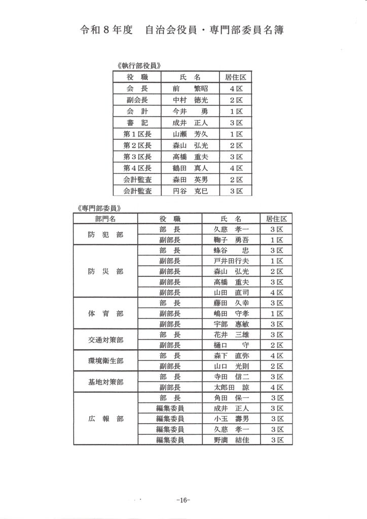 1区長:山瀬芳久 会長:前繁昭 書記:成井正人